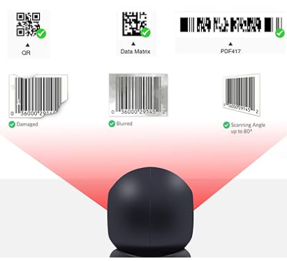 - Escáner automático de código de barras omnidireccional manos libres: el escáner de código de barras symcode puede capturar fácilmente códigos de barras 1D, 2D/QR en etiquetas, papel y teléfonos móviles o pantallas de computadora, sensible y preciso.